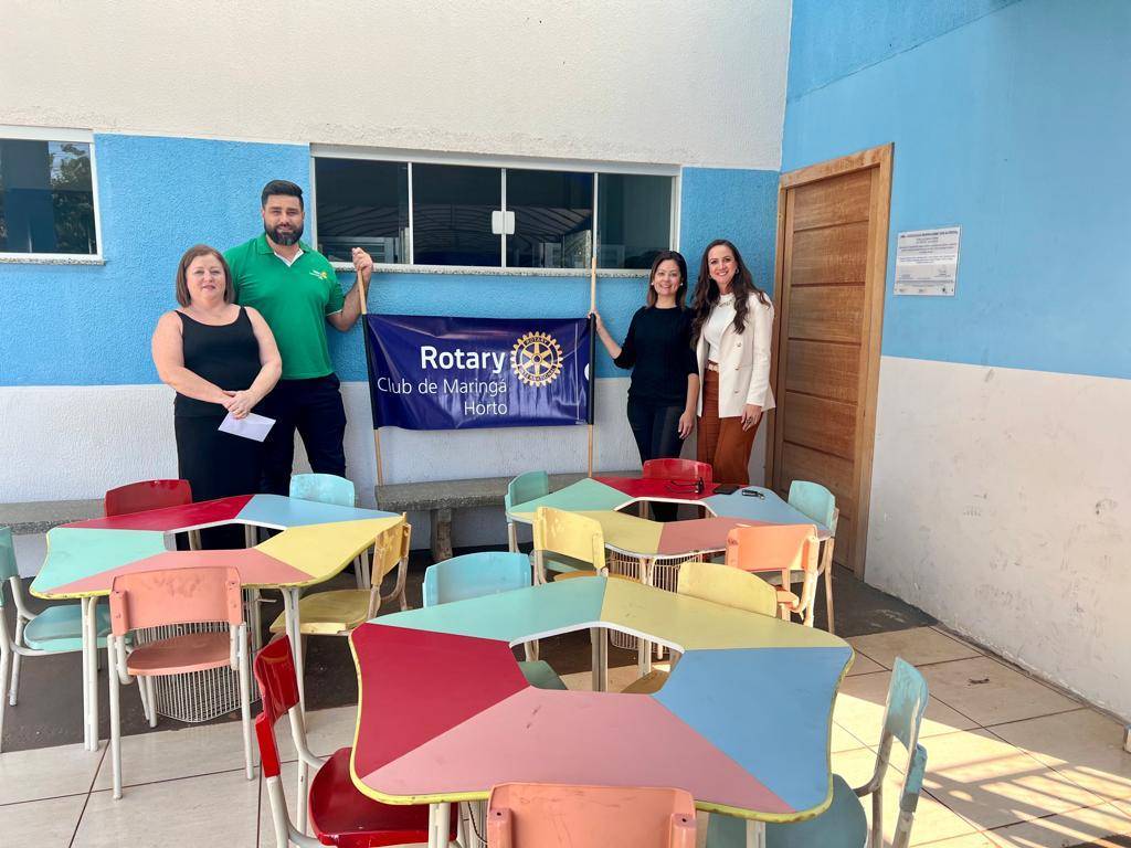 Rotary Club de Maringá-Horto, fez a doação a AMA Associação Maringaense dos Autistas, de três (3) jogos de mesas e cadeiras infantis, a entrega foi realizada no dia 20/07/2023, pelos companheiros Bruna Lima, Angela Cecilia Medeiros de Resende e Leandro Pinheiro Fernandes, e contou com a doação feita pelo companheiro Werno Klockner Junior, os objeto doados serão utilizados para uso ditatico da entidade alcansando em torno de 106 alunos beneficiados.