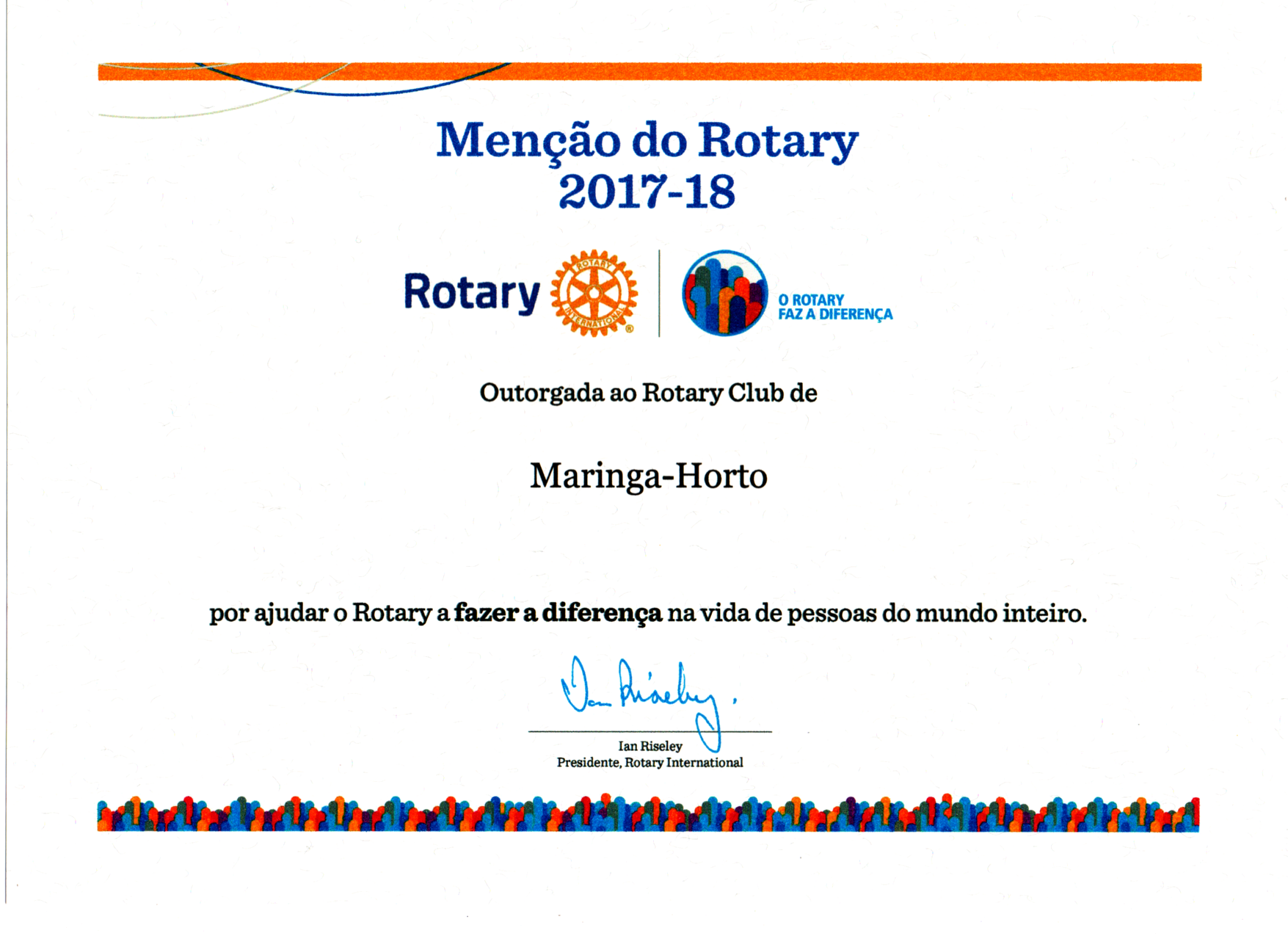 ROTARY CLUB DE MARINGÁ-HORTO, recebe a MENÇÃO PRESIDENCIAL 2017/2018, por ter atingido as metas solicitados pela Governadoria do Distrito 4630 e do Rotary International.